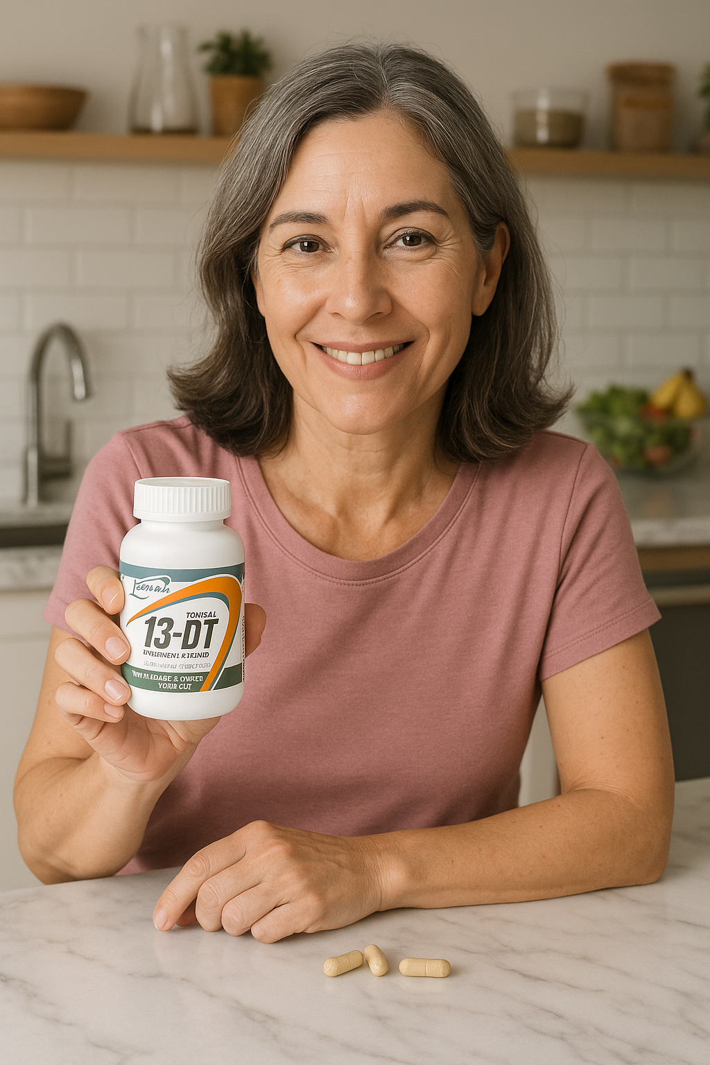 13-DT Digestivo es un aliado natural para mantener el equilibrio intestinal y acompañar la digestión día tras día. Su aporte es complementario y no reemplaza una alimentación balanceada; se integra a la rutina como una opción práctica y vegetal para quienes buscan sentirse más ligeros y con mayor bienestar interno.